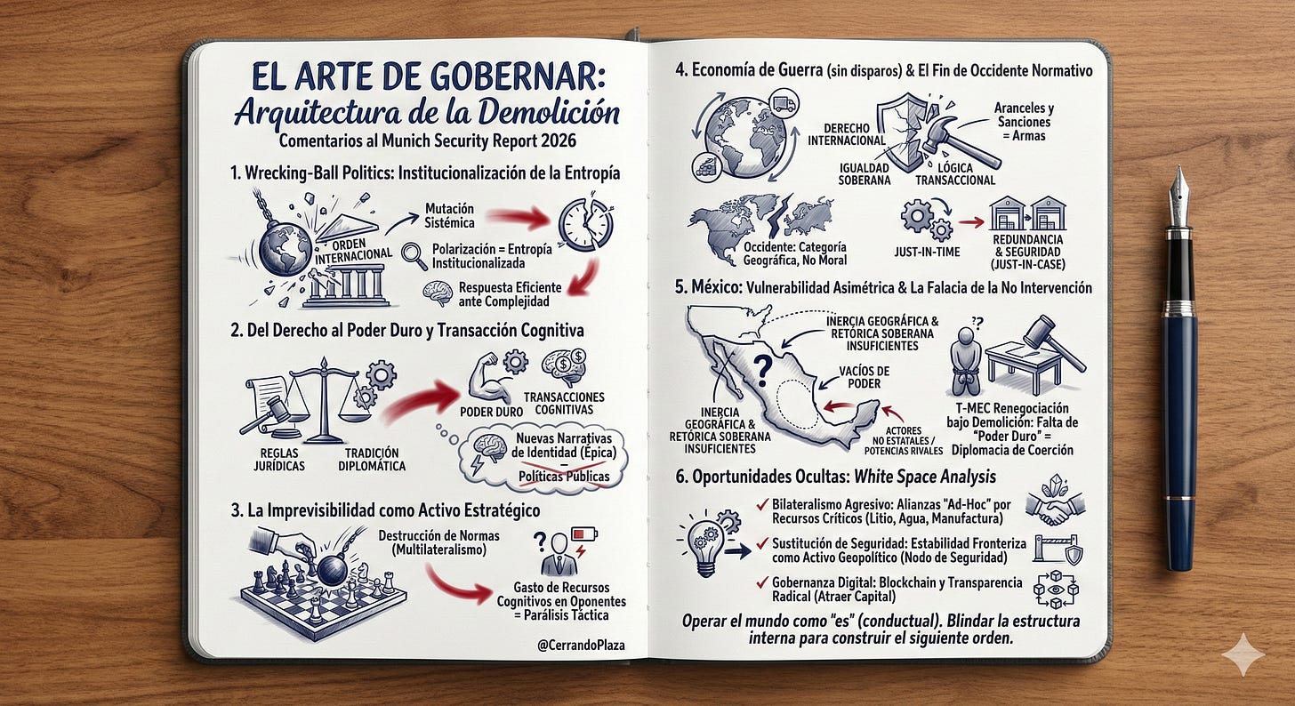 Finalizando, el Munich Security Report 2026 es un manual de operaciones del enemigo y no un pronostico del tiempo. La política de la demolición llegó para quedarse porque es psicológicamente rentable como efectiva estratégicamente en el corto plazo.